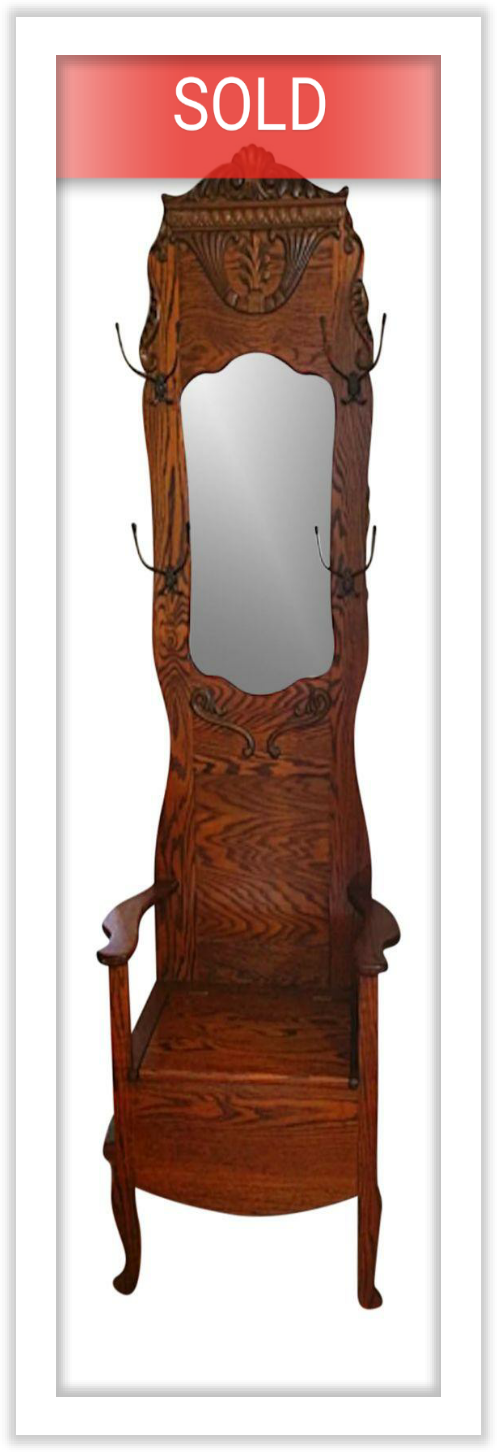 Victorian Tiger Oak Hall Tree with Storage Bench
